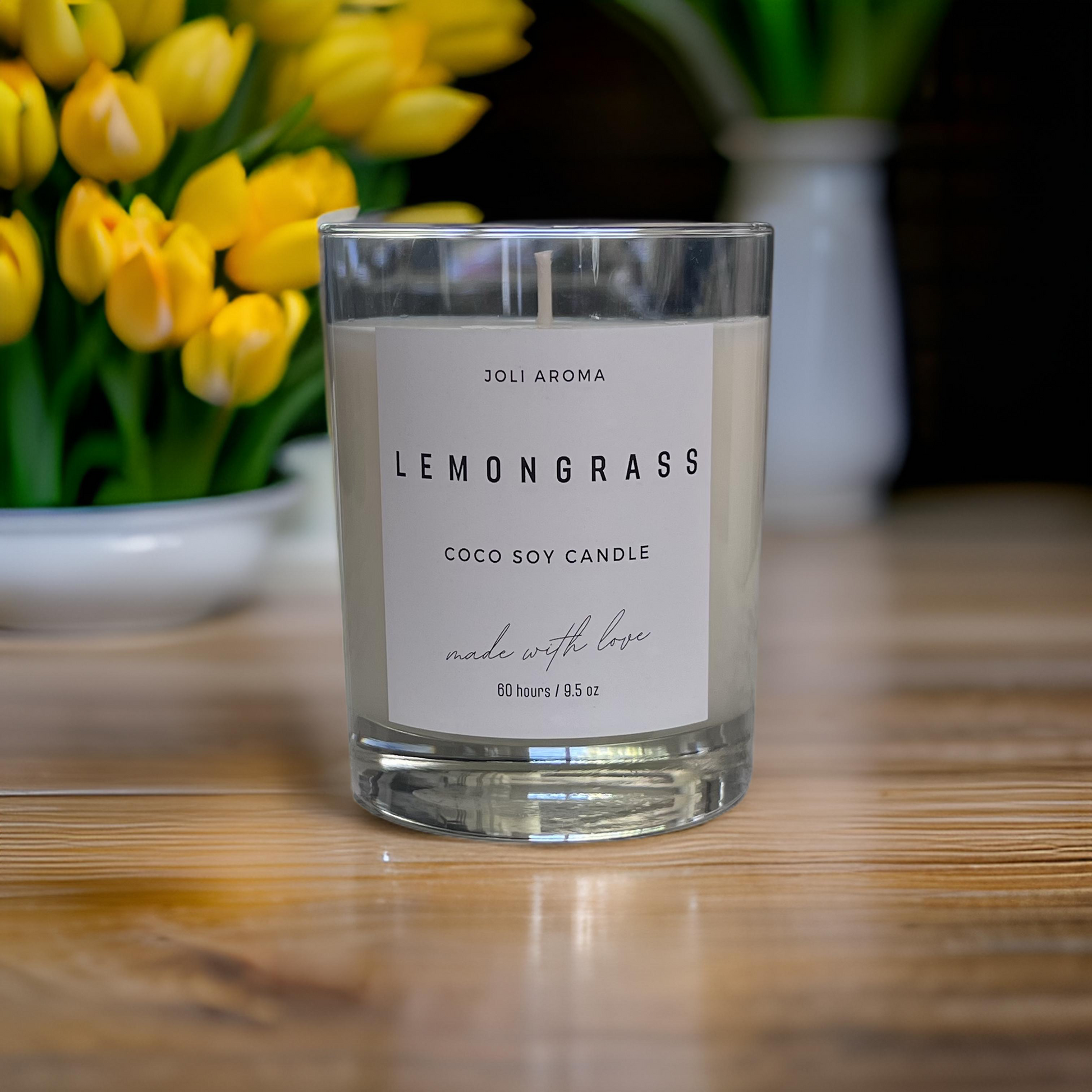 Non-Toxic Lemongrass Candle in Glass Jar - Handmade with Coconut Soy Wax for a Clean Burn
