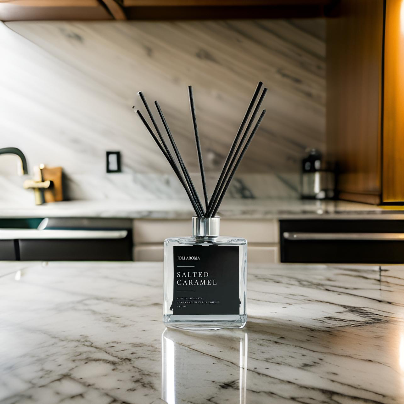 Introducing our newest addition to the fragrance collection - the Salted Caramel reed diffuser. This sweet and indulgent scent will transport you to a cozy café on a crisp autumn day, with the rich aroma of buttery caramel and a touch of sea salt. Our high-quality reed diffuser is made with premium essential oils and will provide a long-lasting scent (3-4 months) that will fill your home with warmth and comfort. Simply insert the reeds into the oil-filled jar and let the natural rattan reeds gently diffuse the delicious scent throughout your home. The Salted Caramel reed diffuser makes for the perfect gift for any fragrance lover or a special treat for yourself. Order yours today and elevate your home fragrance game to the next level!